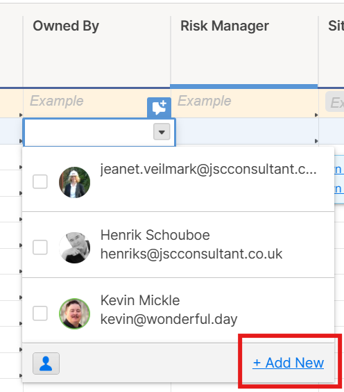 Within the various modules there are fields where you would enter names (risk owner for example). Although you can just enter a name we recommend that you create a contact so you have both a name and their email. Without the email they would not receive the various notifications that the system is generating automatically.