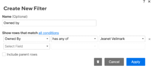 You can setup filters to quickly view specific information in a view. This could for example be a filter for specific risk owner or the findings from a specific audit.