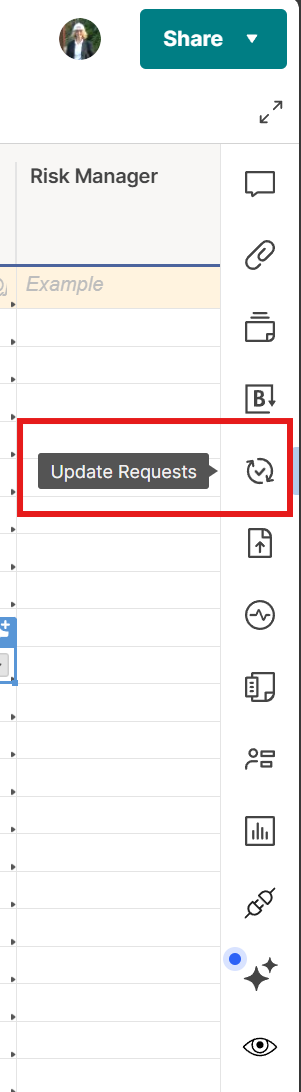 Within each ticket item (risk, action, recurring action) you can create update requests.